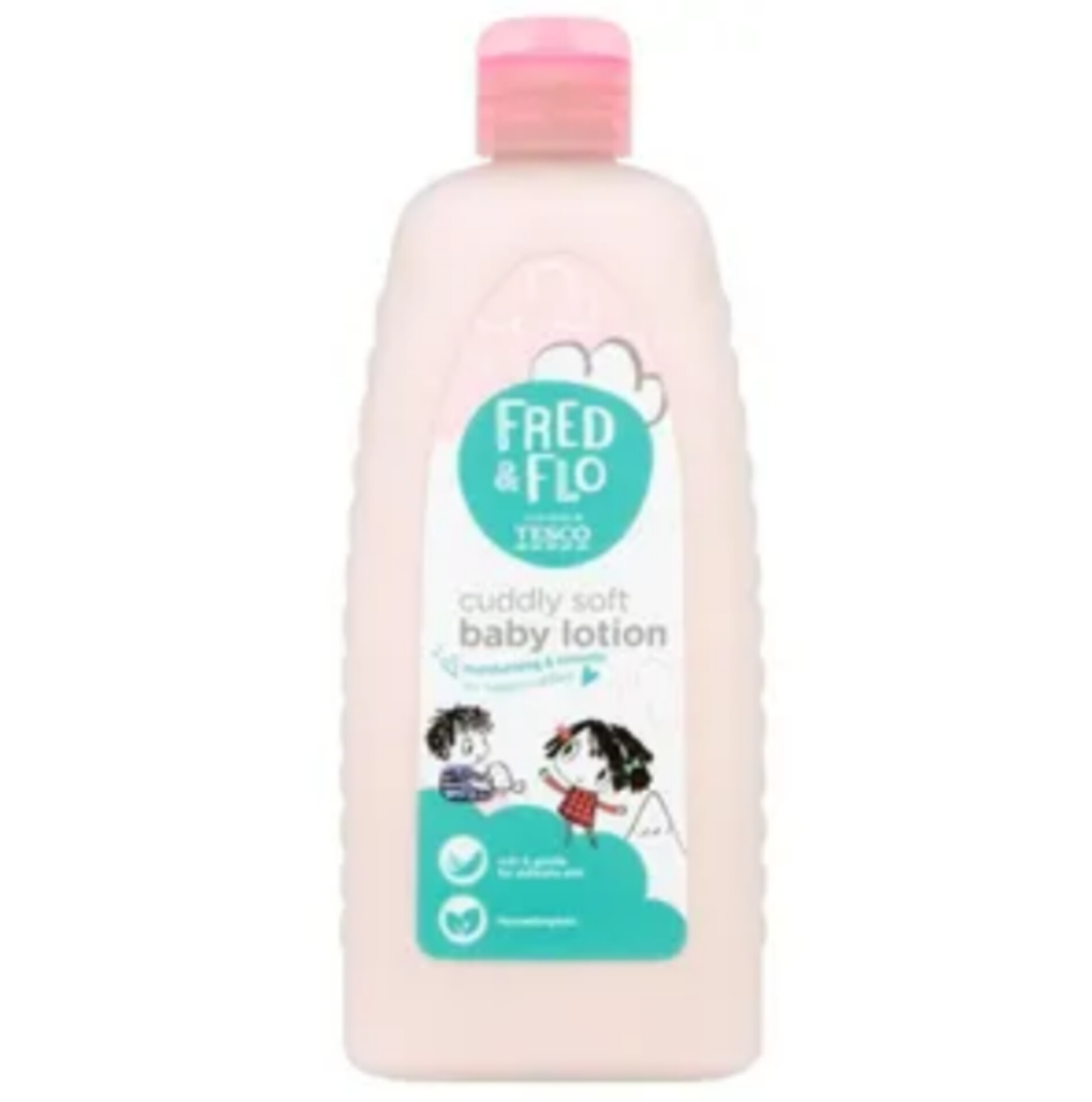 Fred & Flo cuddly soft baby lotion helps hydrate and moisturise your baby’s delicate skin, leaving it feeling soft and smooth. A mild and non greasy formulation which is easily absorbed and gently softens skin and helps protect against dryness. Suitable for newborns and has been paediatrician approved and dermatologically tested.• soft and gentle – for delicate skin • hypoallergenicOur moisturising baby lotion helps hydrate and moisturise your baby’s delicate skin, leaving it feeling soft and smooth. A mild and non-greasy formulation which is easily absorbed and gently softens skin and helps protect against dryness. Suitable for newborns and has been paediatrician approved and dermatologically tested.